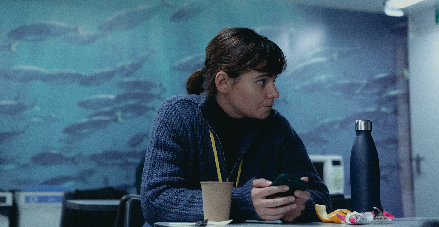While the film does have its share of slow moments, it nevertheless steers away from a conventional narrative by creating a structure that is ultimately much more sensory than narrative, where the story manages to share and convey the loneliness of its protagonist to the viewer. We never leave her side for a second; she is in absolutely every shot, despite her dreary daily life, friendless and almost lifeless. And through an extremely repetitive job where she talks to no one, the film traps us in this almost dialogue-free narrative in her workplace, which is particularly successful in conveying the character’s exhaustion. This inevitably creates a distance between the viewer and the protagonist, making the film feel quite long and truly exhausting despite its relatively short running time (105 minutes). While the downside of this approach is of course that the story isn’t particularly exciting all the way through, it is nevertheless the great strength of a film whose narrative device ultimately perfectly captures its message. “On Falling” not only demonstrates quite plainly, but also lets us experience how this economic system dehumanizes and divides through a productivity that silently condemns bodies and isolates souls.