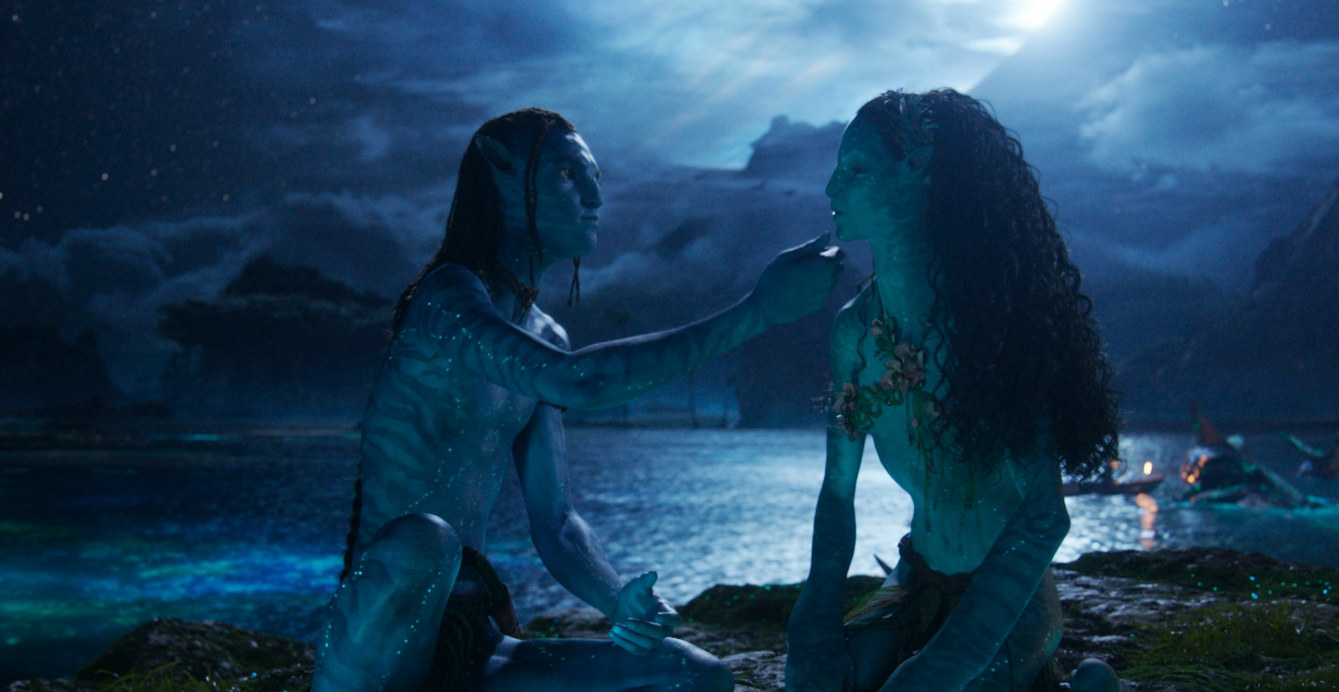 Et à l’image de l’adaptation de ce personnage par la planète elle-même, le film introduit d’excellentes idées, parfois assez radicales bien que pas nécessairement toujours pleinement abouties. C’est quand même un blockbuster qui explore la xénophobie d’une de ses protagonistes à travers la honte de sa différence face à leur représentation du clan, c’est un film qui met quand même en scène une tentative de suicide, et ouvre un audacieux débat sur le meurtre prémédité d’un enfant à des fins plus grandes pour l’espèce. Ce sont des choix de scénario bien plus osés que dans le second opus. Mais malheureusement ces fortes idées ne sont pas pleinement exploitées, de même que la trajectoire en miroir de Quaritch avec Jake, le poids de la croyance, ou l’introduction de Na’vis tellement déconnectés de leur environnement qu’ils en viennent à devenir kamikazes, sans oublier une antagoniste (Oona Chaplin) qui dégage une véritable férocité mais dont les intrigantes violence signifiée et perte de foi sont réduites à un simple contexte. Symboliquement c’est un scénario fort, mais dont le manque de subtilité et la structure du récit ne peuvent que générer de la frustration.